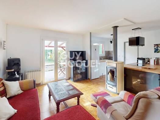 Au calme dans un quartier résidentiel paisible, maison traditionnelle de plain-pied de 69m² comprenant véranda chauffée, chambre, séjour salon avec poêle à bois, cuisine aménagée et équipée, dégageme...