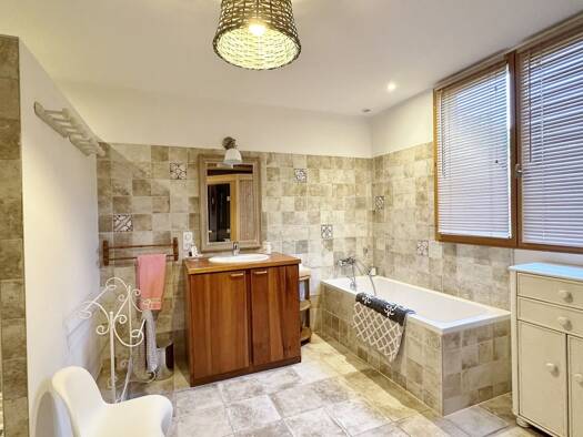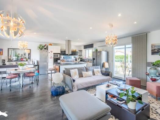 Située dans un environnement paisible et recherché, cette belle maison de plain-pied allie confort moderne, fonctionnalité et qualité de vie. Édifiée sur un terrain arboré de 1 021 m², elle saura séd...