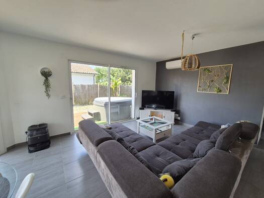 A 10 mns des plages, au coeur d'un quartier calme, maison contemporaine de bon goût offrant un salon/séjour lumineux, cuisine américaine, 2 chambres, salles d'eau et suite parentale. Vous apprécierez...