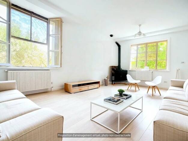 Au pied du Mont Ventoux, à Malaucène, à 5mn à pied du centre et des écoles, somptueuse demeure contemporaine de standing, offrant de magnifiques volumes et des prestations de qualité: grand séjour av...