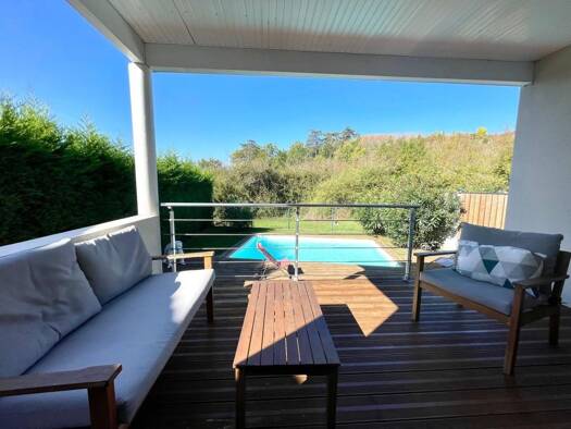 A Bassens, située dans une jolie impasse arborée et au calme, très belle maison traversante EST/OUEST en R+1 de 2012, d'une superficie de 118m2, avec garage et piscine. Elle se compose en rez-de-chau...