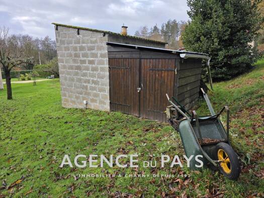 Dans un cadre bucolique, petite maison comprenant : séjour, cuisine, chambre, salle d'eau wc, mezzanine. Abris de jardin. Etang en face et riviere qui borde le terrain. Le tout sur 7275 m² de terrain...