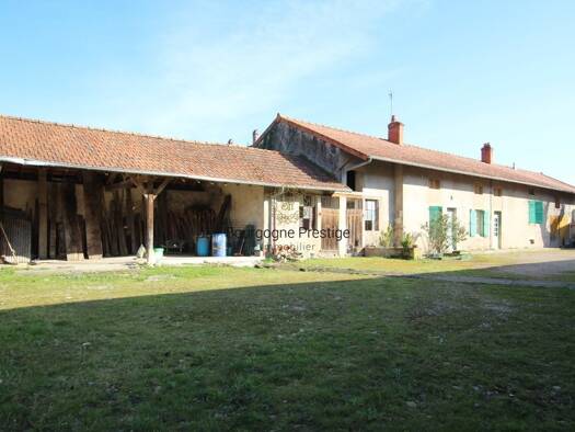 A 10 minutes de Cuisery, dans un village agréable, une ancienne ferme, d'une surface habitable de 134 m² avec de nombreuses dépendances, dont un bâtiment indépendant composé de deux granges, d'écurie...