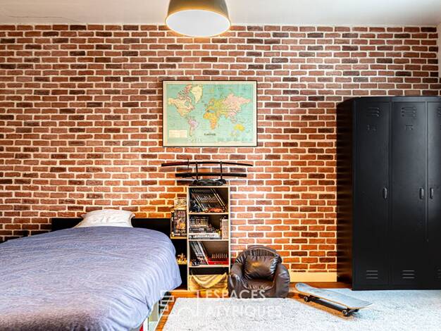 ORLÉANS DUNOIS, Très jolie maison bourgeoise de caractère repensée par un architecte et rénovée aux couleurs actuelles dans un esprit contemporain. Des matériaux d'époque préservés, parquets, cheminé...