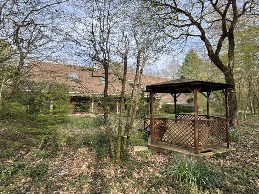 Au calme dans la verdure, maison rustique de 176m² hab., comprenant : hall d'entrée, séjour-salon 40m² (sol terre cuite, cheminée), cuisine séparée 15m², bureau, chambre, salle d'eau, wc. A l'étage :...