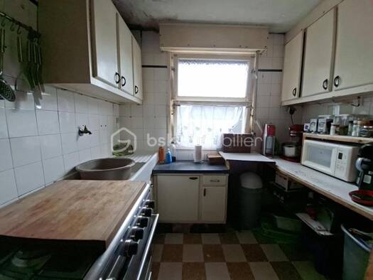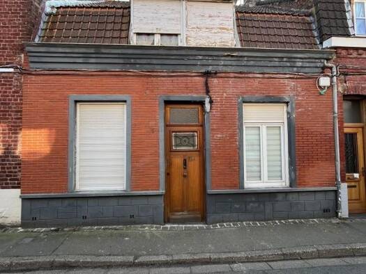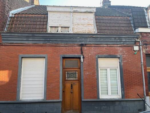 HAZEBROUCK EXCLUSIVITE Idéalement situé entre la gare et la grand Place, maison mitoyenne des années 50 à rénover offrant hall d'entrée, salon séjour, cuisine meublée, salle de bains et WC. Au 1er ét...