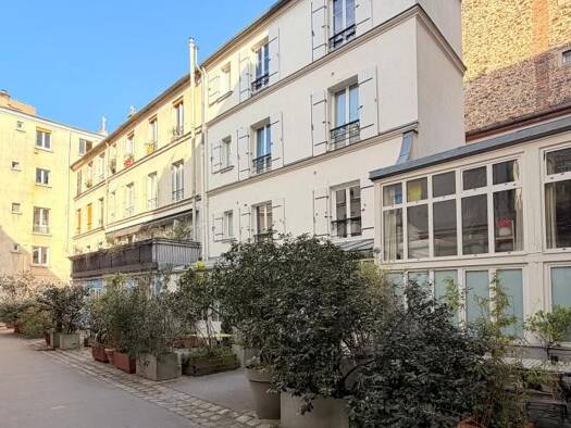 Maison de charme – Rue Oberkampf, Paris 11e En fond de cour calme et fleurie, véritable havre de paix au cœur du 11e arrondissement, jolie maison de 103,50 m² au sol répartie sur 4 niveaux, en parfai...