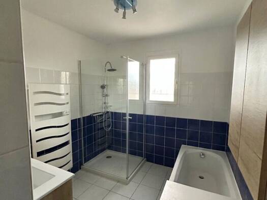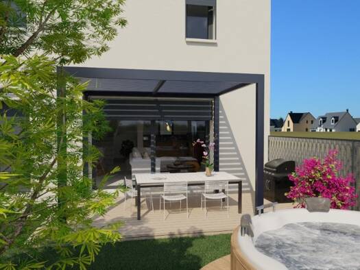 Maison familiale de 90m2 en plain pied, construite en 2019 (sous décennale) comprenant 4 pièces, 3 chambres dont une avec salle de douche, wc, salle de bain. Cette maison de 90m2 habitables de plain ...