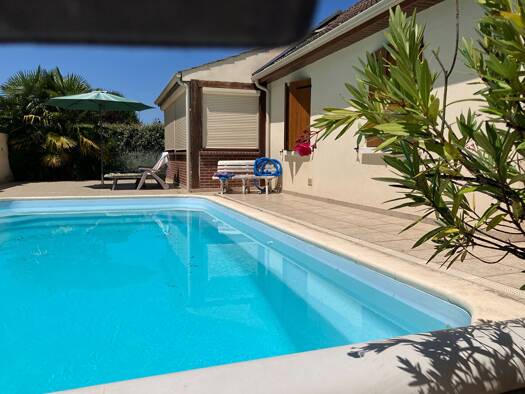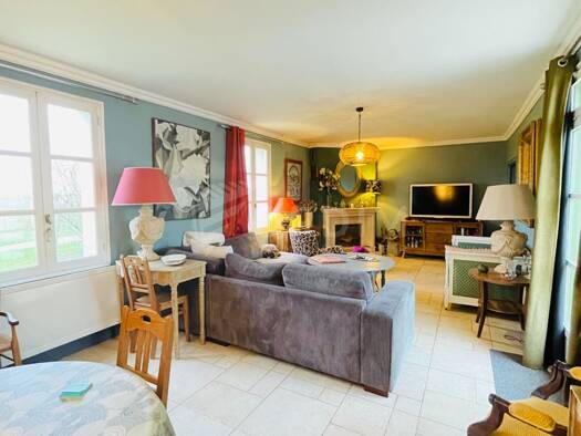 Maison de 142 m² comprenant salon, salle à manger avec cheminée, 4 chambres, bureau, cuisine aménagée, séjour avec 2-eme cuisine donnant sur terrasse avec piscine chauffée, 2 sde, sdb, 2 wc, sous-sol...