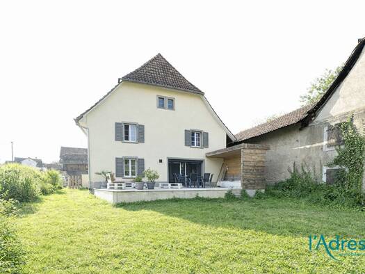 Ballersdorf , au coeur du village Sundgovien, entre Dannemarie et Altkirch, L agence l'Adresse vous propose à la vente cette magnifique maison à colombage rénovée (160 m²) sur un terrain de 7, 28 are...