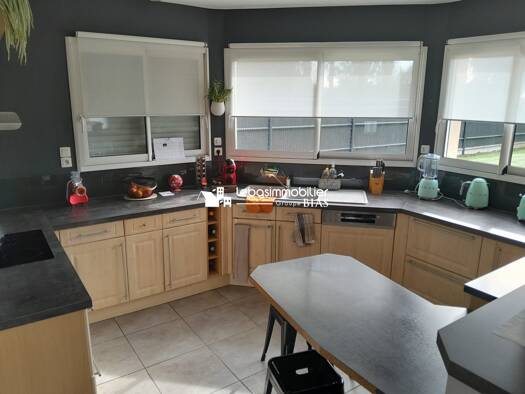 PROCHE RN15, PAVILLON DE 2008, COMPRENANT AU RCH : ENTREE, CUISINE AMENAGEE EQUIPEE OUVERTE SUR SEJOUR, SALON AVEC POELE A BOIS, SDE, WC, CELLIER. A L' ETAGE : DEGAGEMENT, 4 CHAMBRES, SDB, WC, BUREAU...