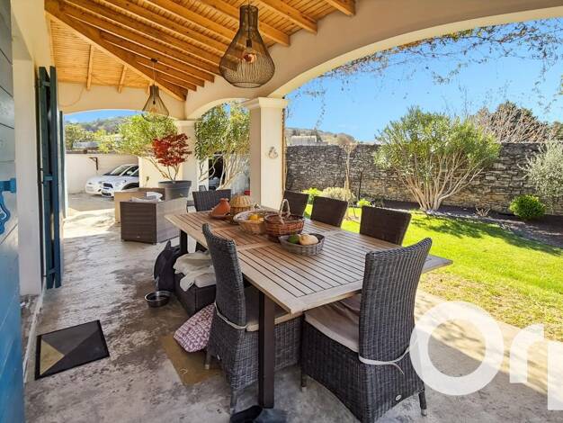 iad France - Philippe Royer vous propose: Une splendide propriété nichée au cOEur du Massif d'Uchaux, sur les hauteurs de Piolenc. Cette demeure de 165 m² allie charme, confort et modernité, avec une...