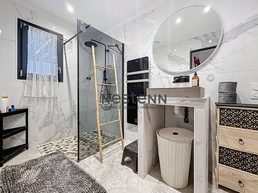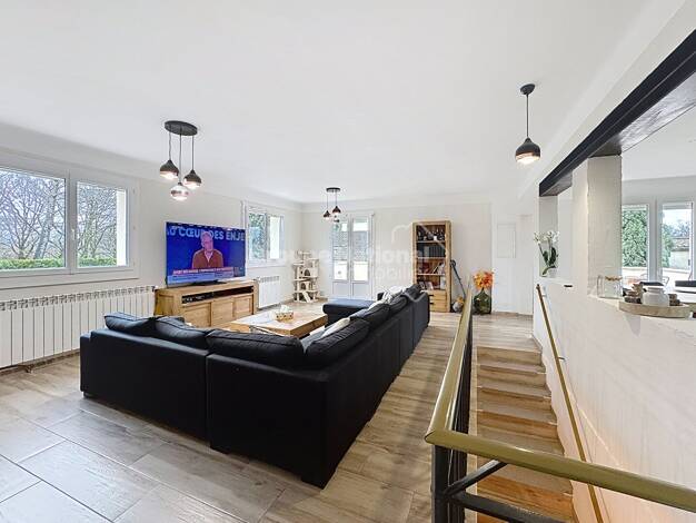 Superbe villa intégralement rénovée, alliant prestations modernes et espaces généreux. À l'étage, vous découvrirez un vaste espace séjour, cuisine totalisant 67m², ainsi qu'une élégante suite parenta...
