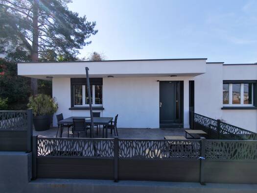 Jolie maison rénovée avec goût de 118M² sur trois niveaux composée : Au Rez de chaussée : Une cuisine équipée moderne ouverte sur la salle à manger donnant sur une terrasse( pour les soirées barbecue...