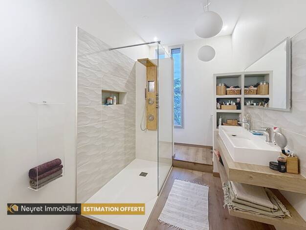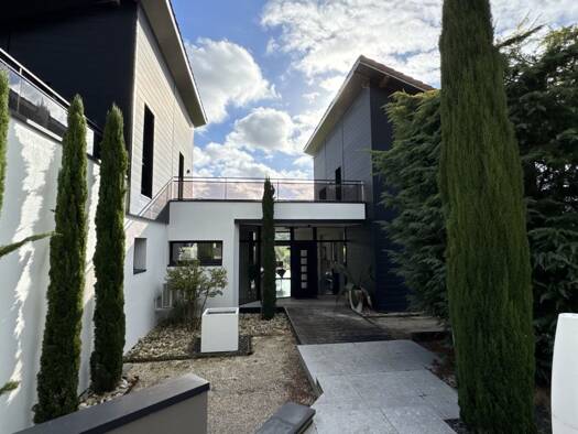 À vendre Exclusivement: Magnifique villa contemporaine de 380 m2 avec une vue imprenable sur les massifs du Pilat. Cette maison vous offre une vaste pièce de vie de 100 m2 avec cuisine ouverte avec u...