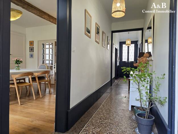 Vous avez une grande famille ou bien vous rêviez de créer votre maison d'hôte, cette maison de caractère idéalement placée répondra à toutes vos attentes. Au 1ier niveau la grande entrée dessert un s...