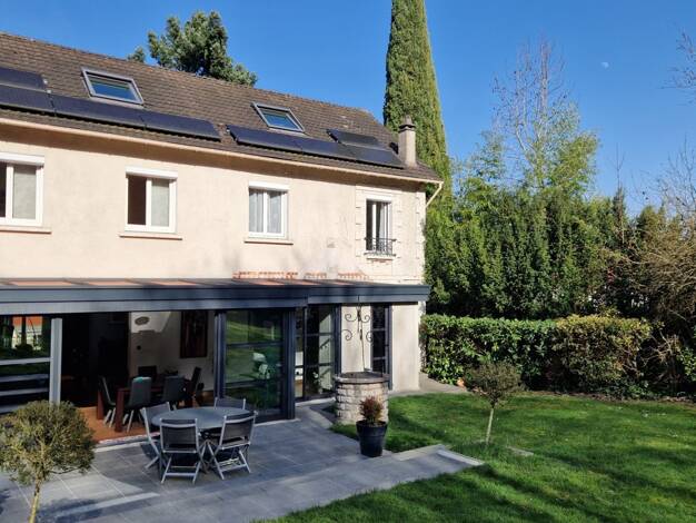 Au calme et proche écoles, RER et commerces maison lumineuse en parfait état comprenant au rez-de-chaussée un salon-salle à manger de 38 m² ouvrant sur terrasse, une vaste cuisine équipée, une chambr...
