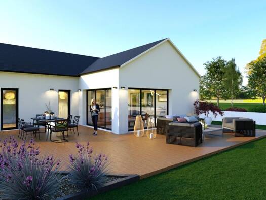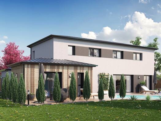 VENTE : maison à ossature bois T6 (125 m²) à Saint-Mars-du-Désert Proche de Nantes - À Saint-Mars-du-Désert (44850), maison neuve en vente de 6 pièces, 2 niveaux, 125 m² de surface et 490 m² de terra...
