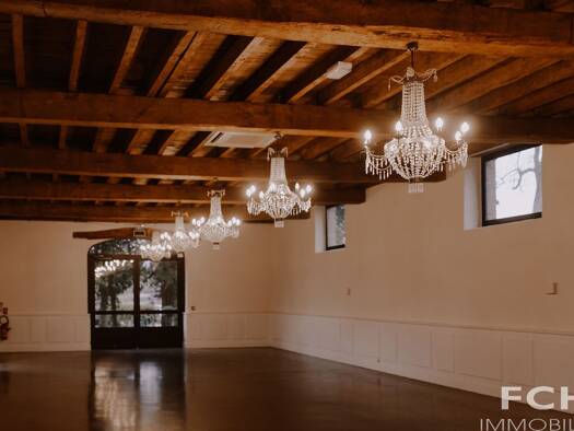 Dans un vaste domaine de 2,22 ha, cette propriété comprend un château, des dépendances, une salle de réception avec bar et cuisine professionnelle, un jardin à la française lové dans la cour d’honneu...