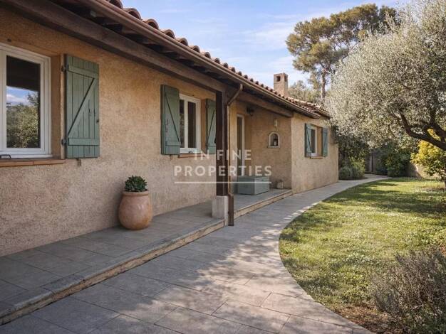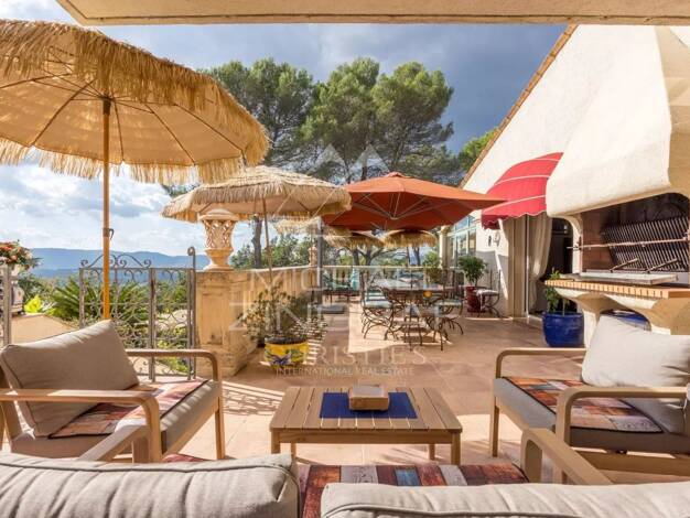 Située dans un environnement paisible, cette superbe propriété bénéficie d’une vue panoramique jusqu'à la mer, le massif de l’Esterel et les collines environnantes. À seulement quelques minutes du ce...