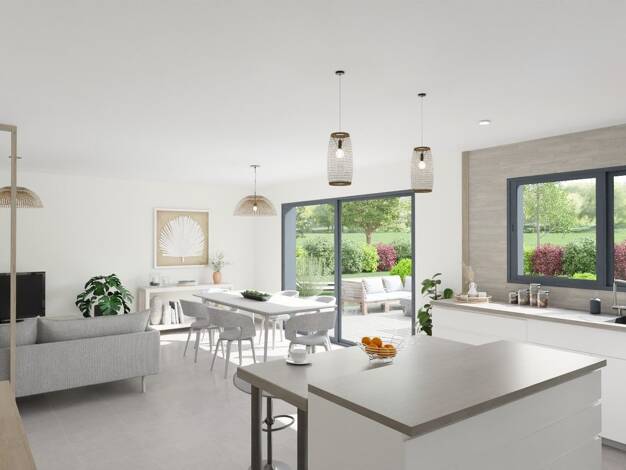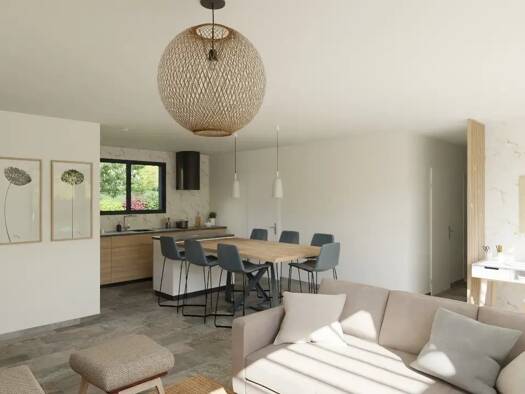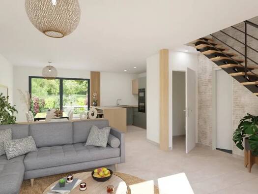 La maison de 93 m² est composée d'une belle pièce de vie lumineuse de 42m² avec cuisine ouverte et un cellier de 6m². Côté nuit, on retrouve 3 chambres se partageant une belle salle de bain moderne e...
