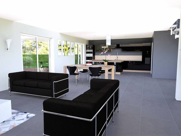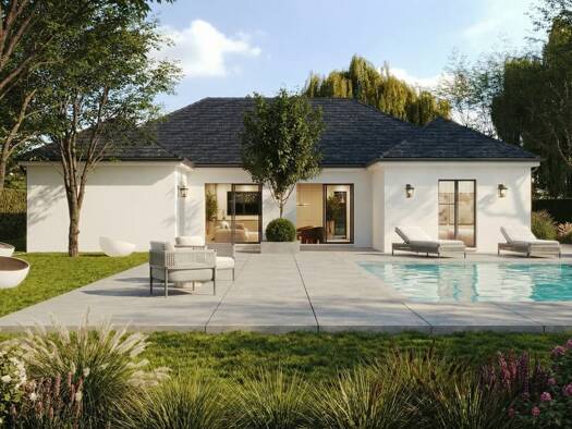 Projet de construction – Terrain borné Découvrez une maison de plain-pied, comprenant 3 chambres et un garage. Ce modèle est entièrement personnalisable : surface, aménagement intérieur et système de...