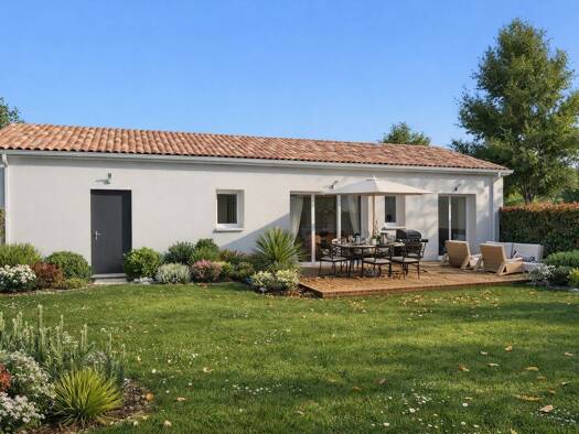 Maison de 5 pièces (120 m²) en vente à Suris Proche de La Péruse - À Suris (16270), maison neuve en vente de 5 pièces, 120 m² et 1 145 m² de terrain. Conçue de plain-pied, elle compte trois chambres,...