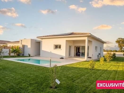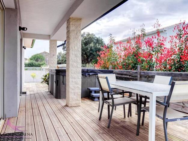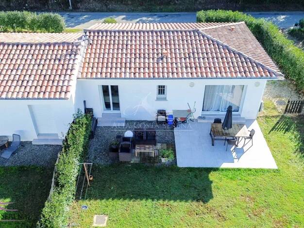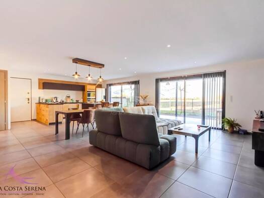 Maison de plain-pied construite en 2012, d’une superficie d’environ 174 m², offrant des prestations confortables et modernes. Elle se compose de trois chambres, dont une belle suite parentale avec ha...
