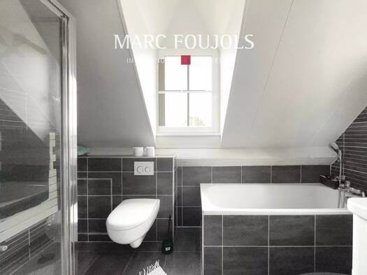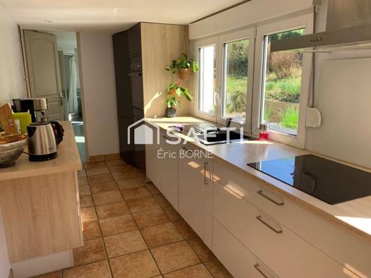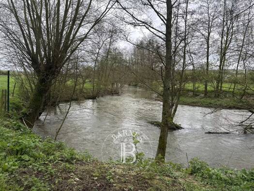Jolie maison d'architecte de 240 m² habitables bâtie sur un domaine de 1,8 hectares bordé par la Lys. Le grand hall d'entrée ouvre sur un séjour avec cheminée feu de bois de près de 45 m², une cuisin...