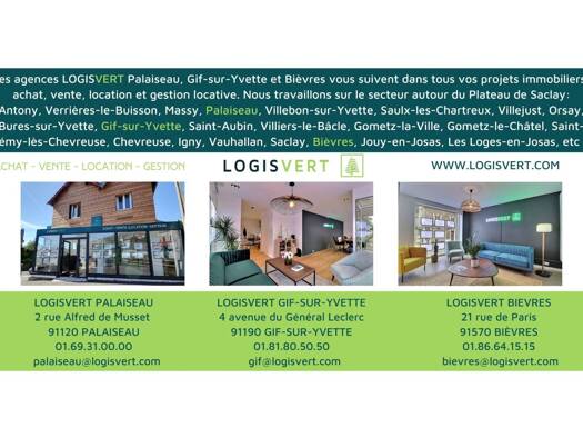 L'agence LOGISVERT vous propose une maison à vendre à Orsay. Secteur CALME et RESIDENTIEL. Grand garage à aménager d'environ 60 m². Orientation plein sud. Le tout sur une parcelle de 450 m². PROCHE C...