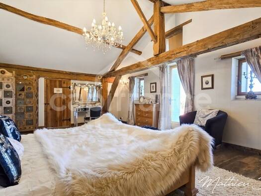 Belle maison du 15ème siècle rénovée à un niveau élevé comprenant au rez-de-chaussée, hall d'entrée (13,7m2), séjour (50m2), 2ieme séjour (14m2), chambre avec placard (14,8m2), chambre avec placard (...