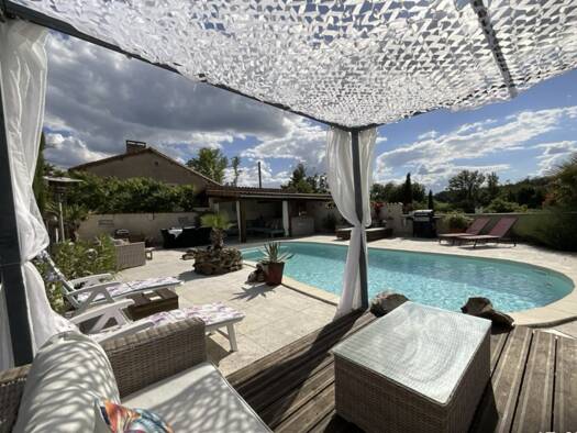 Au coeur du Périgord Vert, à 10 minutes de Ribérac et de l'étang de la Jemaye, une villa spacieuse avec de belles prestations vous offrant un beau cadre de vie, incluant piscine, jacuzzi 6 places, ma...