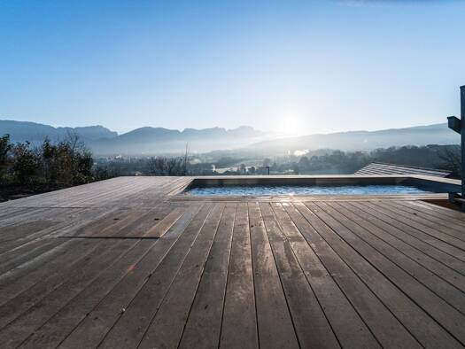 Maison bois contemporaine neuve de190 m² + 50 m² d'annexes signée Dunoyer : une pièce à vivre spacieuse et lumineuse avec cuisine ouverte sur le séjour, 4 chambres et suites, un bureau, un grand espa...