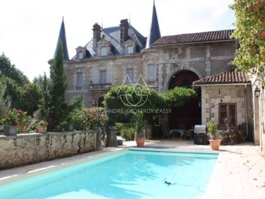 Superbe château du XIX ème avec piscine et dépendances, au coeur d'un charmant village avec commerces et école entre Dax et Peyrehorade. Cette belle bâtisse de plus de 800 m2 se trouve à l'abri des r...