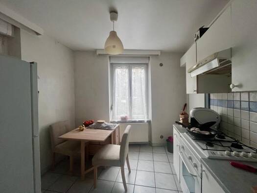 Dès que vous franchissez la porte, vous entrez dans une maison de ville de 133 m² qui ne demande qu'à retrouver vie. L'entrée dessert une cuisine ,dans la continuité un salon/séjour avec poêle à bois...
