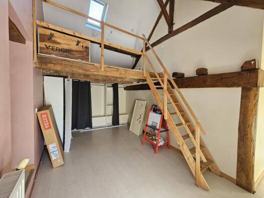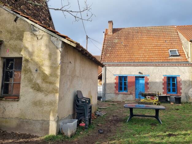 Ancien corps de ferme à rénover comprenant une maison d'habitation mitoyenne d'un côté d'environ 48 m² au sol offrant une pièce de vie de 25 m² avec cheminée et four à pain, espace pour votre cuisine...