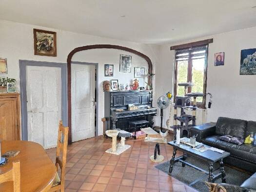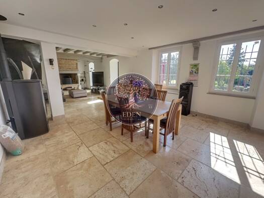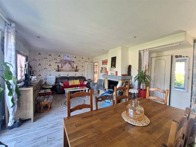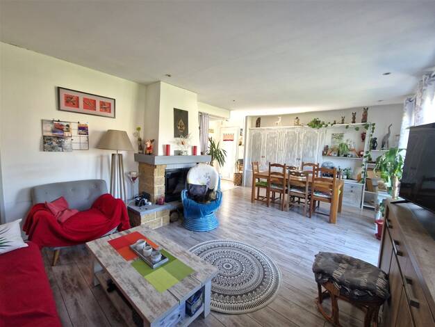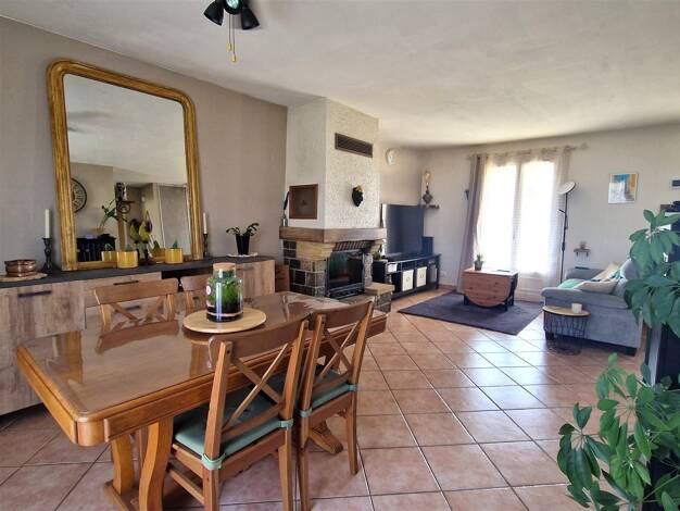 A découvrir, cette charmante maison de plain-pied, idéale pour une vie de famille confortable et conviviale. Dès l’entrée, vous serez séduit par un vaste espace de vie lumineux, agrémenté d’une chemi...