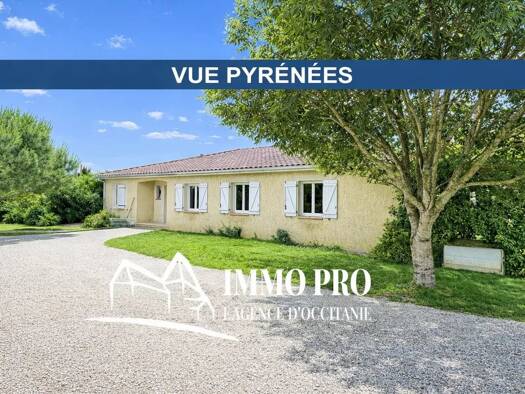 A mi-chemin entre Gimont et Samatan, villa de PLAIN-PIED de 138m² habitables avec SOUS-SOL complet sur un parc de plus de 7000m² et sa magnifique vue sur les Pyrénées. Entrée avec grands placards, cu...