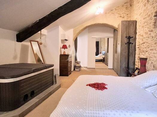 Charmante maison de village de 179m2 Elle se compose d'une cuisine équipée d'environ 24m2, un salon de 30m2 qui donne sur la cour avec sa cuisine d'été. A l'étage une chambre de 40m2 avec salle d'eau...
