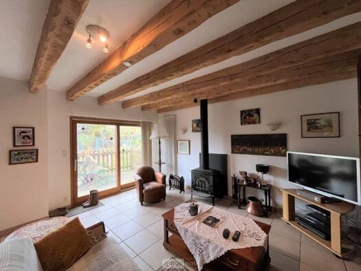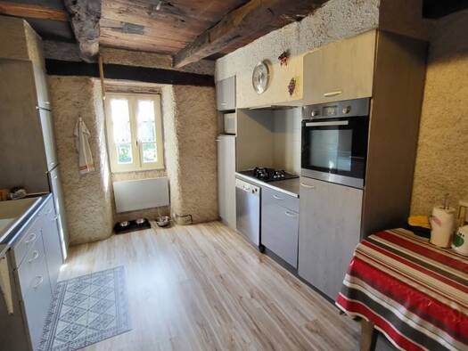 Dans un hameau calme cette maison en pierre sur sous-sol avec cave et garage est composée d'une cuisine ouverte sur le séjour avec un salon attenant. Au niveau supérieur vous trouverez 2 chambres, un...