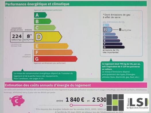 Honoraires inclus de 8.75% TTC à la charge de l'acquéreur. Prix hors honoraires 80 000 euros. Classe énergie D, Classe climat B Montant estimé des dépenses annuelles d'énergie pour un usage standard ...