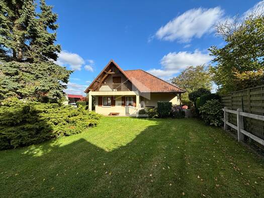 Venez découvrir cette maison style chalet en bois avec un magnifique parc/jardin arboré et fleuri offrant : entrée, grand séjour salon avec cheminée de feu de bois et une cuisine ouverte avec un deux...