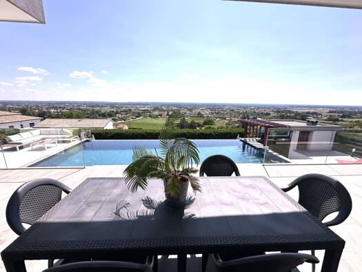 iad France - Emmanuelle Boudet vous propose: 1 heure de Bordeaux- Superbe Maison contemporaine aux beaux volumes - 4 chambres- piscine- jardin - double garage Sur les hauteurs de Marmande, à Beaupuy,...