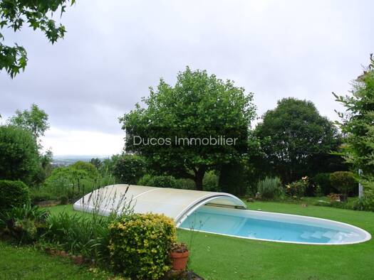 Dotée d'une vue sur la ville de Marmande, cette maison sur deux niveaux est bien entretenue et bénéficie d'une piscine couverte avec un dôme, volet en alu, menuiserie en double vitrage bois et 12 m² ...