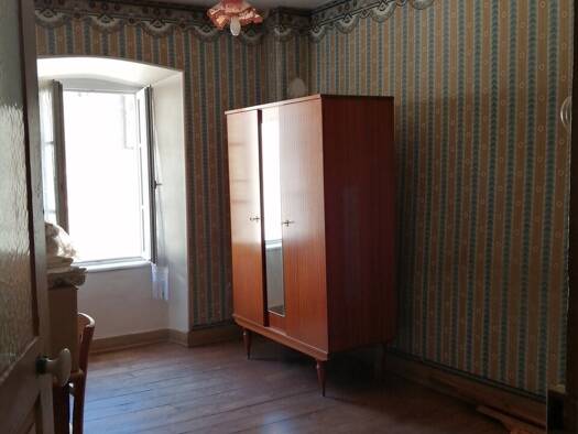 Maison avec avec jardin située en bout de hameau. Elle se compose en rez de chaussée d'une cuisine ouverte sur la cour , d'un salon et d'une salle d'eau, à l'étage on trouve deux chambres et un dress...