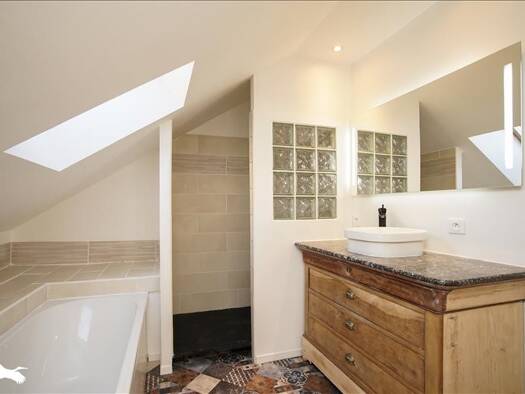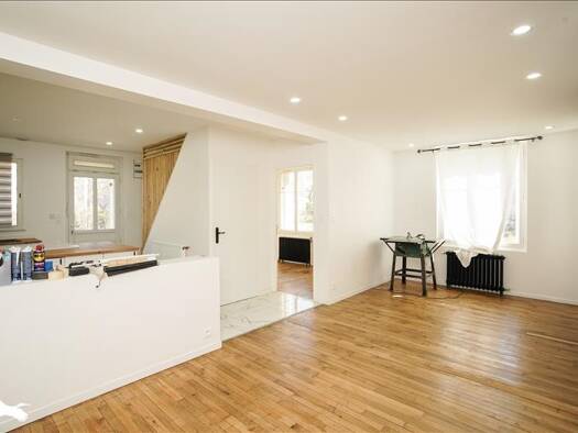 Du cachet pour cette maison des années 50 remise au gout du jour. Elle offre une entrée, une cuisine ouverte aménagée sur le séjour et un accès direct au jardin. 2 chambres, un bureau pouvant faire o...