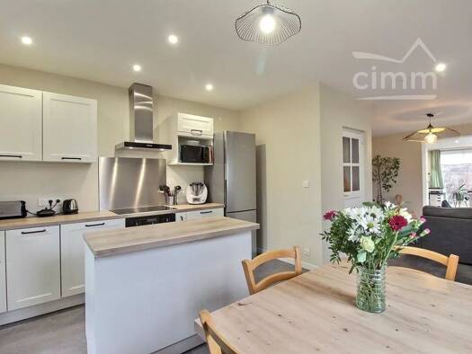 Maison spacieuse et bien pensée, vous seduira par sa configuration optimisée. La pièce de vie de forme en L, se compose d'une cuisine ouverte donnant sur le jardin avec son cellier traversant. 3 cham...