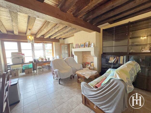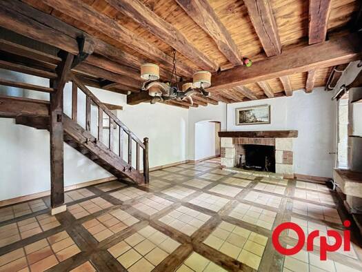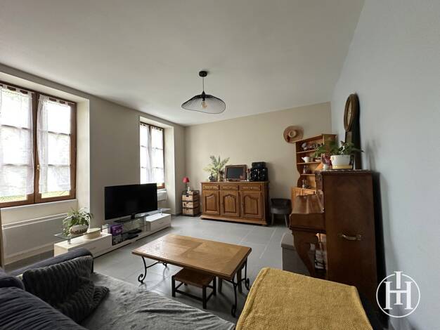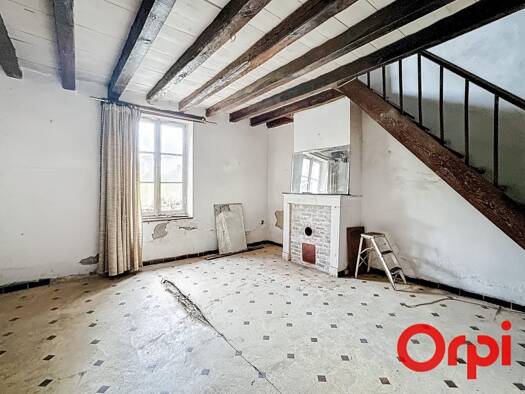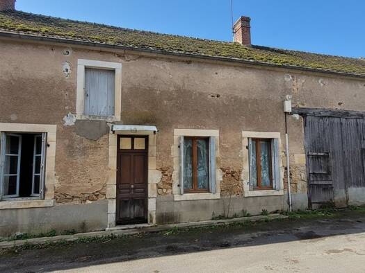 Référence: 2421 Au coeur du village, maison de bourg avec quelques travaux se composant d'un séjour avec cuisine ouverte, de deux chambres, un garage, une salle d'eau et WC indépendant ainsi qu'une g...