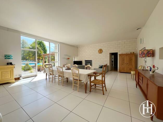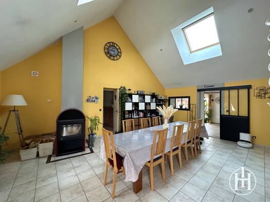 Dans un environnement calme et agréable, à quelques kilomètres de toutes les commodités, découvrez cette spacieuse maison d'architecte d'environ 230 m² habitables, offrant de beaux volumes et de nomb...