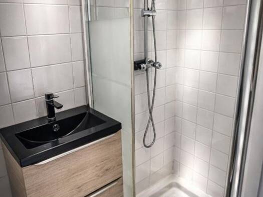 Au rez-de-chaussée, vous serez accueilli par une entrée desservant une spacieuse chambre avec rangements intégrés ainsi qu'une salle d'eau avec WC. Cet espace offre de multiples possibilités : chambr...